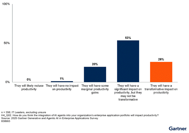 In May and June 2025, Gartner conducted an industry-wide survey of 360 IT application leaders from organizations with at least 250 full-time employees in North America, Europe and Asia/Pacific, with the aim of understanding the impact of generative AI (GenAI) and agentic AI across enterprise applications.